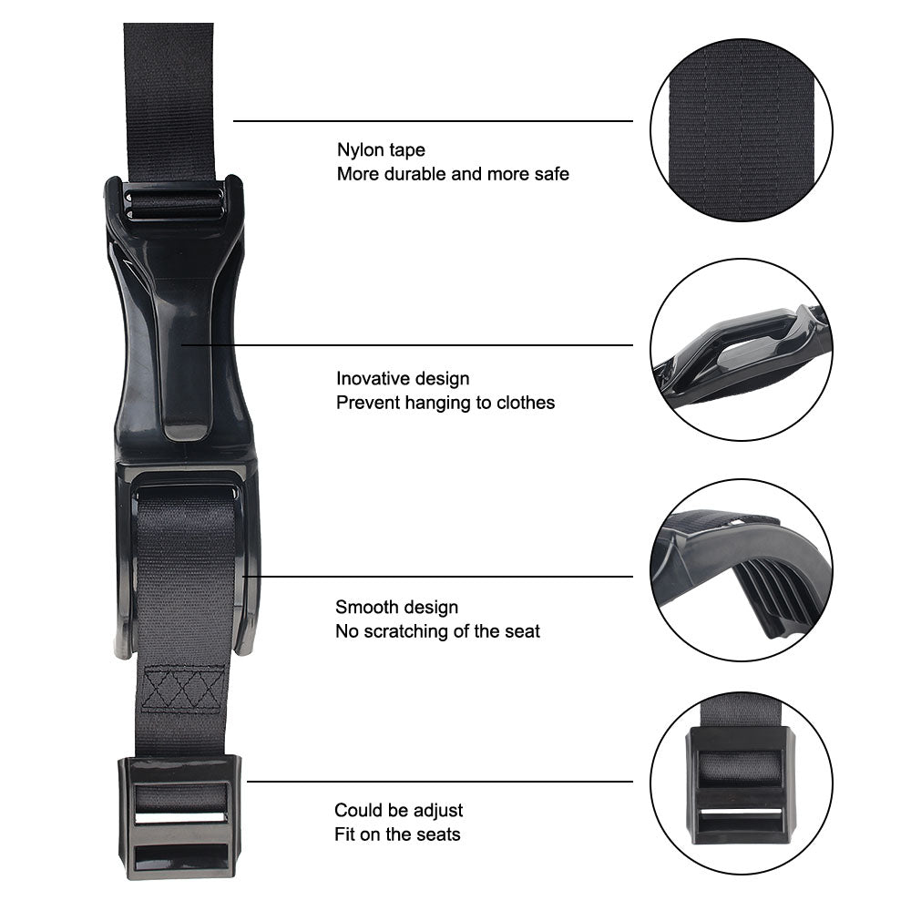 Crafted with high-strength polyester nylon tape and a smooth, scratch-free plastic hook design that won’t damage seats or snag clothing.